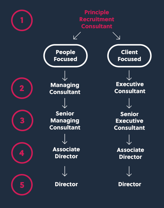 Once you make the next move up to Principal, the overall flow of job opportunities becomes more weighted towards inbound sales activity, and you will be working with candidates at a more senior level. Principal Consultant is a gateway role whereby you can start deciding which direction you would like to take your career next, be that people management or sales focused.